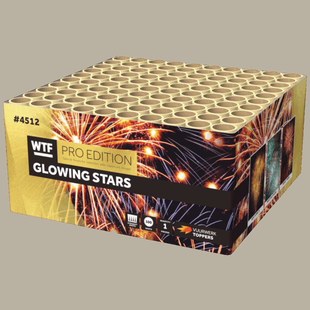 WTF Pro Edition Vuurwerk Glowing Stars 100 shots Goedkoop vuurwerk kopen bij Vuurwerkwinkel Ijburg